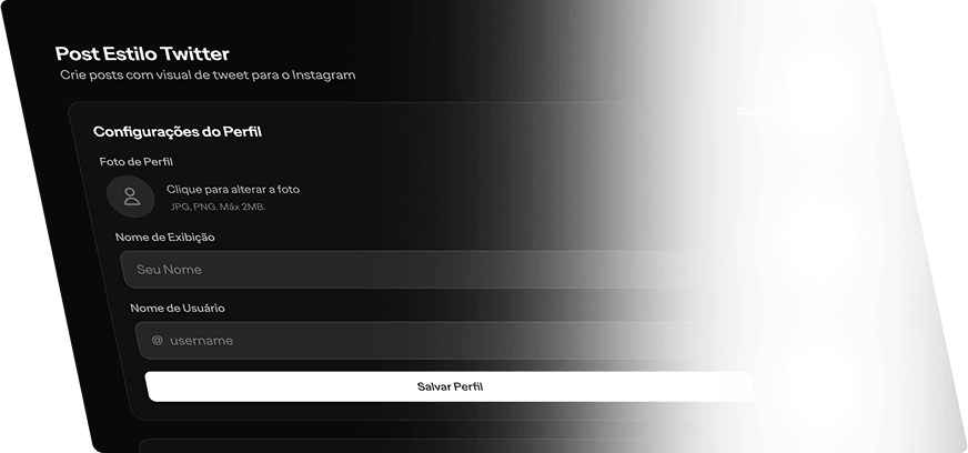 Basta adicionar sua foto de perfil e seu @ que o sistema gera automaticamente um post pronto para feed, com estética nativa e aparência de conteúdo real, não de anúncio.